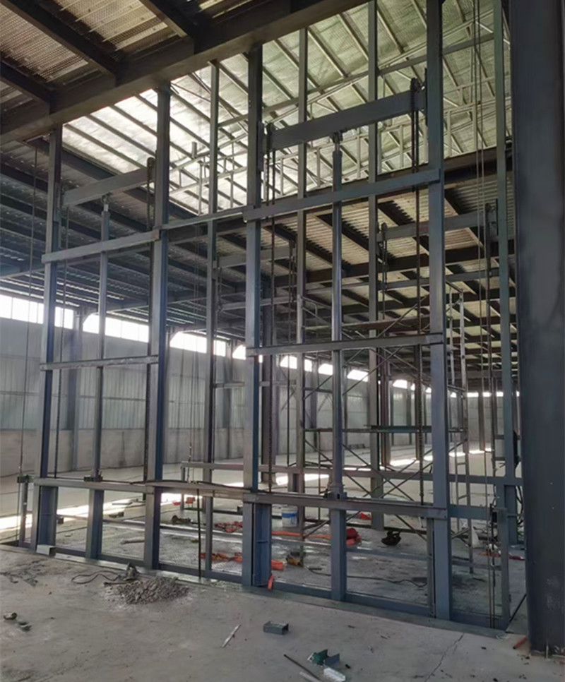 15662431777大噸位導軌式貨梯的主要功能是把貨物從地面把貨物垂直運輸到指定高度樓層,另一個功能是把貨物從地下室垂直升降運輸到地面或指定高度。控制方式是在地面和每一層都可以控制升降機的升降、停止。控制方式可以采用按鈕控制,也可采用遙控控制。